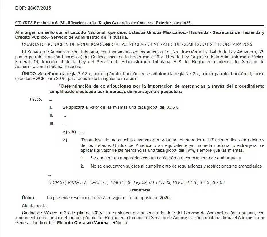 墨西哥海关再次"瞄准"中国包裹,33.5%重税来了!发表时间:2025-07-30 17:53 ![]() 墨西哥政府近期针对国际包裹,特别是来自未签订贸易协定国家的包裹,显著上调了进口关税。此次关税政策的调整,不仅对依赖跨境电商平台的消费者产生直接影响,也预示着墨西哥对外贸易政策的进一步收紧。 ![]() 01 包裹税率突袭:你的账单要“变脸”了? ![]() 墨西哥财政部依据《2025年对外贸易通则》的第四次修订决议,正式公布了进口包裹的税费调整方案。自8月15日起,通过快递和包裹企业简化方案进口的商品,将统一按照货物价值的33.5%征税,相较此前2025年1月1日开始生效的19%税率有显著提升。 但此项新税率不适用于来自美国与加拿大的商品,因墨西哥与两国签订了《美墨加协定》,若货物符合协定的优先来源国标准,仍可享受免税或低税率优惠。 对于海关价值超过117美元的包裹(无论是否来自《美墨加协定》国家),统一适用19%的税率,此19%的税率亦较原先的17%有所上调。但此税率的适用需满足两项条件: 一、提供空运提单或货运凭证; 二、不涉及非关税管制或限制措施。 ![]() 02 为何对“黑金”贸易痛下狠手? ![]() 墨西哥政府此次上调关税,核心在于加强对进口商品的监管,以遏制走私和税务欺诈行为,并为本国产业提供保护。今年第一季度,墨西哥对网购进口商品征收的税款以及对无贸易协定国家的关税涨幅已超过50%。财政部于去年5月明确指出,此类关税涵盖钢铁、铝材、鞋类、塑料、玻璃及陶瓷等多个行业,且修订后的政策有效期将持续至2026年4月23日。 此前,税务局在去年已披露部分快递企业在进口操作中存在违规行为,意图通过偷逃或减少税款的方式将商品非法入境,构成走私及税务欺诈犯罪。专家普遍警示,鉴于当前的反走私及反欺诈措施力度,进口税可能成为本年度涨幅最高的税种之一。 ![]() 03 Shein和Temu如何“自救”? ![]() 面对新的关税壁垒,Shein、AliExpress和Temu等主要跨境电商平台正积极调整其运营策略,以降低物流成本、加速配送并维持市场竞争力。其中,将业务重心转向纳入墨西哥本土卖家及制造商,已成为其共同的选择。 Shein率先于2023年6月在墨西哥推出带有“本地配送”标签的国内商品市场。随后,Temu和AliExpress也跟进此策略,通过整合本土供应链,这些平台显著缩短了商品配送时间,有效解决了此前中国发货至墨西哥耗时近一个月的问题。 ![]() ![]() 墨西哥此次对国际包裹关税的大幅上调,直接影响了跨境电商消费者和相关企业,也预示着墨西哥贸易环境将朝着更加规范化、透明化的方向发展。 作为深耕中墨跨境物流多年的服务商,我们也会持续关注墨西哥最新的关税及贸易政策,确保合规运营和实现可持续发展的目标,保证每一批货物都能合规、有时效、顺利的抵达目的地。 ![]() 声明:此篇为「盛德国际」墨西哥海外仓-空海运专线物流-跨境电商快递原创文章,转载请标明出处链接:https://www.sanstar.net.cn/bggs.html
