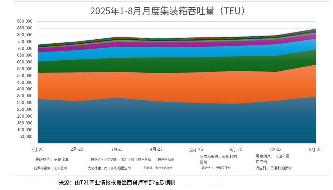 谁是墨西哥集装箱暴涨纪录背后真正的“幕后推手”?发表时间:2025-10-10 17:54 ![]() 尽管墨西哥经济增长看似停滞,并在全球贸易紧张局势中面临关税带来的不确定性,但墨西哥的集装箱货运量却在持续强劲增长,并有望创下新的历史纪录。这一逆势上扬的势头,正将墨西哥港口推向全球贸易网络的前沿。 ![]() 01 墨西哥如何堆出历史新纪录? ![]() 根据墨西哥海运代理协会及墨西哥海军部的数据,墨西哥港口的集装箱吞吐量正迈向历史新高。 墨西哥商船总局局长克劳迪娅·埃尔南德斯·索尔多宣布,在过去八个月内(1月至8月),全国港口系统共处理了 6,297,881标准箱(TEU),较去年同期增长 1.5%。这位官员强调:“我们即将打破年处理 937 万个集装箱的纪录。” ![]() 02 曼萨尼约的40%份额与三大港口的暗战 ![]() 2025年8月,全国港口集装箱吞吐量达 850,841标准箱,创下当年最高记录。在所有港口中,墨西哥集装箱处理量第一大港——曼萨尼约港的表现尤为亮眼: · 曼萨尼约港: 8月刷新年度纪录,处理 346,249标准箱,较2024年同期增长 2.9%,并占据了当月全国港口份额的 40%。 · 拉萨罗卡德纳斯港: 8月处理 235,656标准箱,为年度第二高,份额占 27.7%,但较2024年同期微降 0.5%。 · 韦拉克鲁斯港: 8月处理 112,232标准箱,份额占 13.2%,较2024年8月下降 1.6%。 · 阿尔塔米拉港: 8月处理 78,634标准箱,份额占 9.2%,较2024年8月增长 6.2%。 ![]() 03 海运躲过一劫,陆运还能撑多久? ![]() 尽管面临特朗普和辛鲍姆实施关税引发的贸易紧张局势,但墨西哥海运代理协会会长费尔南多·孔·莱德斯马指出,目前货运市场并未萎缩,出口量保持稳定。 根据国家统计地理研究所(Inegi)的数据,2025年8月墨西哥外贸总额达 1.13万亿美元。其中出口 5571.82亿美元(同比增长 7.4%),进口 5766.21亿美元(微降 0.1%)。 然而,Amanac会长警告,关税威胁并未完全消除。由于美墨贸易中 80%的出口通过陆路运输,因此当前对海运的冲击尚不明显。他强调,若未来对其他贸易伙伴加征关税,恐将严重冲击货物流通。 ![]() 04 集装箱滞留危机与墨西哥国家计划的救赎 ![]() 在集装箱吞吐量激增的背后,墨西哥物流链条的核心挑战在于如何缩短集装箱滞留时间。以核心集装箱枢纽曼萨尼约港为例,其正面临仓储空间不足的问题,根源在于物流链衔接不畅——卸箱后,海关查验和放行流程未能顺畅衔接,导致集装箱滞留时间过长。 为解决这些结构性问题,墨西哥政府正在推行“墨西哥国家计划”,该计划着力于基础设施建设与现代化改造,旨在解决包括曼萨尼约港在内的全国主要港口和物流节点的效率问题。 ![]() 墨西哥集装箱吞吐量有望打破历史纪录,无疑是其在全球贸易重塑大背景下的一个积极信号。它证明了墨西哥港口系统在适应货物集装箱化趋势方面的潜力,但这一亮眼数据的背后,是关税的潜在威胁和曼萨尼约港等核心枢纽仓储空间不足、物流链衔接不畅的结构性挑战。 未来,“墨西哥国家计划”能否成功推动基础设施现代化,缩短集装箱滞留时间,将是墨西哥能否巩固其贸易地位、并在不确定的全球经济中实现可持续增长的关键。 ![]() 声明:此篇为「盛德国际」墨西哥海外仓-空海运专线物流-跨境电商快递原创文章,转载请标明出处链接:https://www.sanstar.net.cn/jzxpjl.html