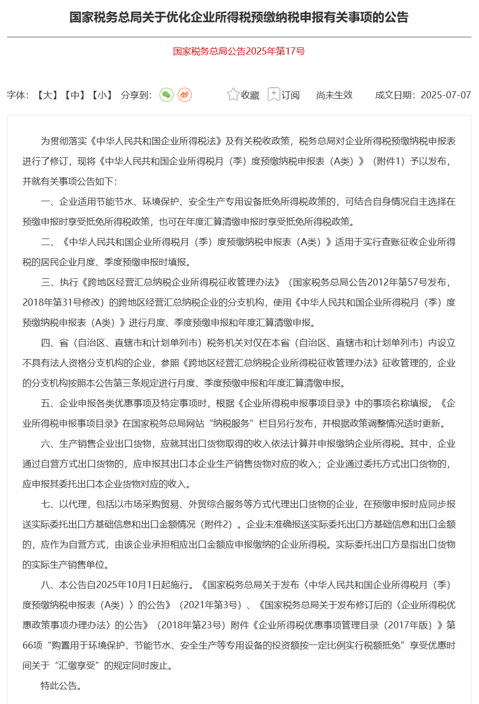 「总税局17号文件」对“买单出口”重大改规!发表时间:2025-07-23 17:27 ![]() 近期,中国税务机关针对出口收入申报管理发布了重要新规,目的就是为了堵住“买单出口”、虚假出口和偷漏税的“口子”。 其中,国家税务总局发布的《关于优化企业所得税预缴纳税申报有关事项的公告》(即国家税务总局公告 2025 年第 17 号,简称 “17 号公告”)意义重大。该公告进一步清晰界定了出口企业在预缴申报环节的具体要求。今后,不合规的买单操作将受到有效遏制,而各类非法行为也几乎难以得逞。 17 号公告将于 2025 年 10 月 1 日正式生效施行,这意味着,留给企业开展内部调整、做好合规准备工作的时间已不到三个月。各企业务必对此高度重视,因为一旦申报信息出现偏差,就有可能触发税务机关的大数据评估,进而面临后续的核查。 ![]() 01 “买单出口”的“好日子”到头了? ![]() 此次税务领域的改革并非孤立开展的行动。2025 年,国家税务局、海关总署等部门已联合发力,通过发布《国家税务总局 财政部 商务部 海关总署 国家市场监督管理总局关于应征国内环节税货物出口优化服务 规范管理有关事项的公告》(即国家税务总局 财政部 商务部 海关总署 国家市场监督管理总局公告 2025 年第 8 号,以下简称 “8 号公告”),进一步强化了部门之间的信息共享机制。 自 8 号公告发布以来,各地税务机关已明显加大了对以往年度业务的核查力度,并且普遍执行 3 年的追溯期。在核查过程中,发现的典型违规行为主要有: ・为压缩出口成本而实施的 “买单出口”; ・购买出口数据以骗取商务补贴; ・针对取消退税的货物进行 “买单出口”; ・借助空壳公司、快速注销等方式进行 “买单配票”,进而骗取出口退税; ・利用代理出口模式,从事 “假自营,真代理” 的 “四自三不见” 行为。 02 17号公告来了!出口收入申报大变脸! ![]() 从 2025 年 10 月 1 日开始,一项硬性要求将正式生效:出口企业在办理企业所得税季度预缴申报时,必须启用全新的申报方法与流程。 17 号公告在此过程中扮演着关键角色,它一方面明确了预缴阶段里出口业务等特定事项的申报准则,另一方面对《中华人民共和国企业所得税月(季)度预缴纳税申报表(A 类)》进行了优化修订。 这些动作背后,是为了搭建起一套完备的税收比对机制和大数据评估体系,进而从源头上消除申报环节存在的各类问题。 03 划重点!新的申报要求都有啥? ![]() 对于生产销售企业的出口货物业务: 生产销售企业出口货物所获得的收入,需依照法律规定计算并申报缴纳企业所得税。 · 若企业采用自营方式出口货物,要申报与出口本企业生产销售货物相对应的收入 · 若采用委托方式出口货物,则需申报委托出口本企业货物所对应的收入。 除了将这些收入纳入营业收入申报外,出口企业还得进一步上报这两类出口收入的详细情况。 关于从事代理出口业务的企业: 开展代理出口业务的企业,应把出口代理费收入计入营业收入进行申报,并且要上报相关具体信息。为了规范代理出口业务的企业所得税管理,以代理方式(涵盖市场采购贸易、外贸综合服务等)出口货物的企业,在进行预缴申报时,必须同时提交实际委托出口方的基础信息以及出口金额情况。 特别提醒: 实际委托出口方指的是出口货物的实际生产销售单位,通常应为境内主体。倘若上述企业填写的信息是报关行、货代公司等非实际委托出口方,或是非境内主体的信息,税务机关会将该笔业务认定为代理出口企业以自营方式出口,相应地,该代理出口企业需承担该笔出口金额应申报缴纳的企业所得税。 ![]() 此次政策调整的另一核心是强化税收征管中的大数据应用。税务机关将通过相关机制,按季、按年监控出口企业收入,确保增值税与企业所得税报表出口数据一致。17 号公告明确了出口收入申报依据和方法,助力打击 “买单出口” 等行为。企业需重视政策调整,主动自查合规,规避税务风险。 ![]() 声明:此篇为「盛德国际」墨西哥海外仓-空海运专线物流-跨境电商快递原创文章,转载请标明出处链接:https://www.sanstar.net.cn/mdck.html