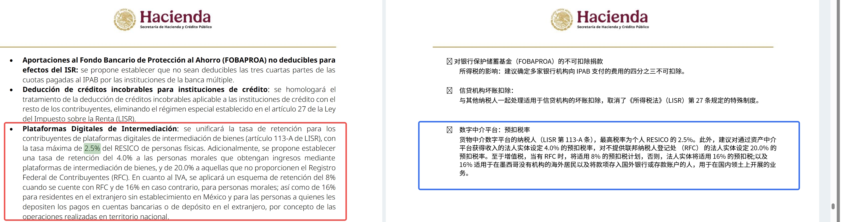 2026年墨西哥税改正式通过!你的合规账本和物流成本要动了!发表时间:2025-10-30 17:54 点击上方蓝字 关注我们 持续为您推送墨西哥最新物流资讯! ![]() ![]() 墨西哥参议院已通过《特别生产和服务税法》等多项修正案,将于 2026 年 1 月 1 日正式生效。这次改革的主要目标是打击逃税避税、终结虚假交易、加强数字平台监管,并简化税务流程。 老规矩,咱们不看官方的“通过”和“批准”,直接来看这次一系列修正案(《联邦税法》、《收入法》等)的本质,是墨西哥政府在2026年要全方位地多收钱和放大权,尤其是对付逃税避税的手段,变得空前强硬。 用大白话来讲,好比墨西哥政府要重新整顿税收这个大账本,把那些偷偷少交钱、做假账的行为都给揪出来,让数字平台的交易也规规矩矩,同时把税收的流程变得更简单清晰,让每一笔钱都清清楚楚。 ![]() 01 SAT将拥有实时数据“万能钥匙” ![]() 这是最需要所有在墨贸易商和数字服务商知道的条款,没有之一。 税务局从“事后审计”迈向“实时监控” 参议院通过的《联邦税法》修正案,赋予了墨西哥税务局打击逃税避税的新职权,其中最具争议的一点,就是要求数字平台向税务局“**开放实时在线数据访问权限”。 以前SAT查账像警察上门按门铃,需要走司法程序,按时调取资料,是典型的事后审计。现在这个实时在线访问权翻译过来就是:税务局给自己配了一把万能钥匙,直接插到你的数字收银台和账本上。 这个监管范围涵盖所有在墨西哥境内提供数字服务(包括境外无实体机构的供应商)的平台。 这像我们以前处理跨境清关,海关以前只是查你的货物报关单,现在税务局要实时查你物流链条上的所有电子交易数据。以前只是管“货”有没有对上,现在是管“钱”有没有对上,监管颗粒度直接拉满。 ![]() 平台代扣税明确,合规成本水涨船高 新法同时统一了数字平台代扣税率: 自然人2.5%、法人4%、未提供RFC者20%。 这明确了平台的代扣代缴责任,商家不能再用资料不全或境外主体来模糊处理了,平台将成为税务局的前哨站,所以税务透明度和合规成本必然会随之上升。 ![]() 02 消费品、旅游和金融的三重增税 ![]() 除了紧盯数字经济的钱袋子,这次修正案也从民众消费、外国人入境和金融领域,全方位地为政府财政输血。 “健康税”和“娱乐税”大幅扩容 《特别生产和服务税法》(IEPS)的修正,直接影响到部分消费品贸易商的竞争力: 调味饮料(“健康税”): 每升税率从2025年的1.64比索大幅上调至3.08比索,涨幅接近一倍。 烟草制品: 特别生产税从160%升至200%。 新增数字内容税: 针对含暴力/极端/成人内容的实体版电子游戏及相关数字服务,按8%征收特别税。 瞄准外籍人士:“行政过路费”普遍提高 《联邦权利金法》修正案,将所有在墨外籍人士的行政成本普遍提高,释放出近岸外包红利下,所有人都需付出更高成本的信号。 入境权利金: 旅游入境外国人权利金将上涨14.2%。 居留许可费: 临时居留和**居留许可费翻倍。 新增收费项: 船舶航行检查申请审核授权费、未成年人/受监护者离境许可格式文件签发费等。 金融税收强化 《联邦收入法》的修正,提高了金融领域的预扣税: · 利息预扣税率从0.50%提至0.90%。 · 金融科技贷款名义利息按20%预扣税。 · 保险公司自2027年起代扣增值税(IVA)。 这些规定确保了金融交易和新金融业态的税收透明化。 ![]() ![]() 这次改革虽然提升了成本,但长期来看,它也为墨西哥市场设立了一个更透明、更公平的合规底线,终结了部分灰色地带的野蛮生长。 ![]() 声明:此篇为「盛德国际」墨西哥海外仓-空海运专线物流-跨境电商快递原创文章,转载请标明出处链接:https://www.sanstar.net.cn/mxgsgtg.html